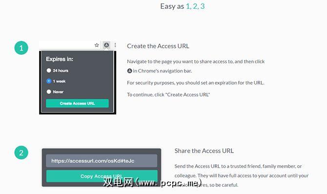 AccessURL使在有限的时间内与任何人共享您的登录信息变得非常容易。有一些收获。您和您的朋友都必须使用Chrome,因为AccessURL是浏览器扩展程序[不再可用],并且您必须保持登录该帐户的权限才能访问他们。出于安全考虑,后者实际上是AccessURL采取的一种措施。