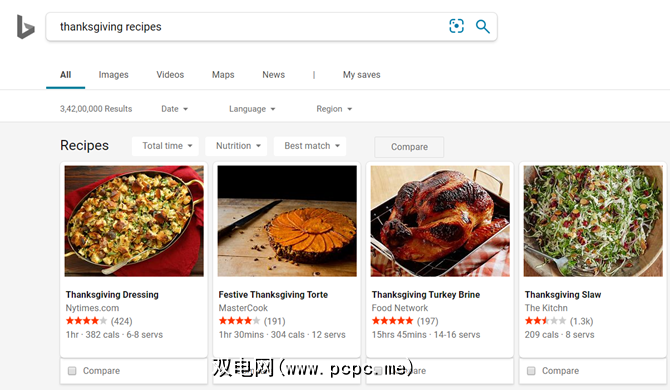 Bing搜索页面上的食谱轮播已经存在了一些时间。但是今年该再次引起人们的注意,因为它可以节省时间。感恩节晚餐意味着丰盛的盛宴,各种各样的盛宴。使用Bing Search查找正确的食谱。