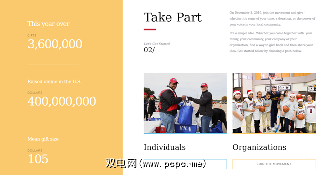 该网站说,在美国有超过200种当地的GivingTuesday运动和60种乡村运动。