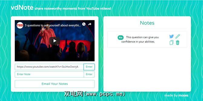 转到vdNote并粘贴指向您要注释并开始观看的YouTube视频的链接。在正确的位置,在文本字段中输入注释。请注意,视频会暂停播放,以便您有时间完成自己的想法。