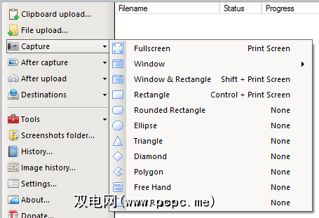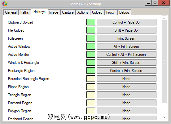 显然,每种此类应用程序都应使用,ShareX支持大量热键。 。其中包括从剪贴板上载,上载文件以及拍摄所有形状和大小的屏幕快照。