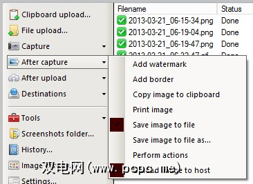 ShareX将允许您在捕获屏幕时执行几个选项。其中包括添加水印,添加边框,将图像复制到剪贴板,打印图像,将图像保存到文件等。