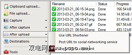 您应该选择将图像上传到主机,您也可以根据成功发生的情况执行操作。其中包括在托管链接上使用URL缩短器,将URL发布到社交网络服务以及将URL复制到剪贴板。