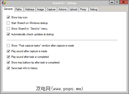 ShareX的设置比您在任何竞争软件中都更深入。 ShareX可以进入系统托盘,启动或“发送到"菜单。您还可以为每个已完成的任务设置多个不同的操作,例如播放声音和显示托盘气球提示。