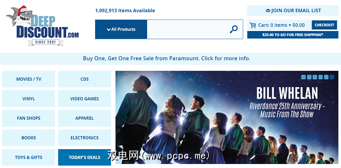 Deep Discount的大多数产品都属于娱乐类。该站点提供了大量CD,DVD,书籍,视频游戏和黑胶唱片(为什么每个人都应该开始收集黑胶唱片)。您还可以找到一些衣物和健身装备。订单满25美元即可享受全球免费送货服务。