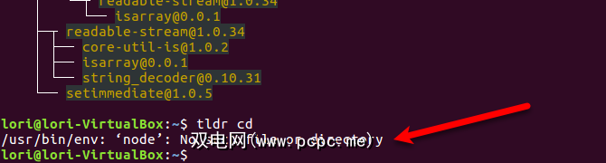 sudo apt install nodejs npm下一步,我们将使用 npm 安装< strong> tldr 。键入:
