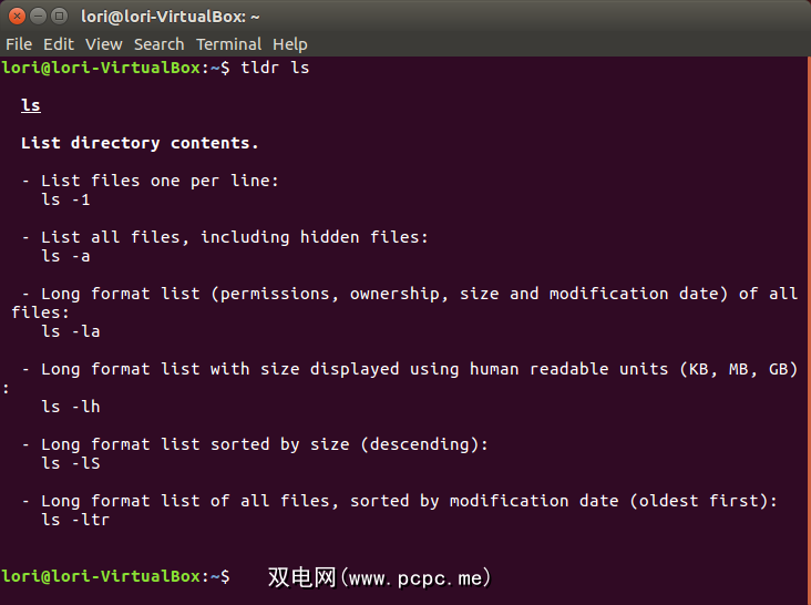 tldr ls您将看到ls命令最常用用法的简短描述。请注意,至少不必滚动浏览结果。我们将终端窗口的高度调高了一点,以便一次显示所有结果。