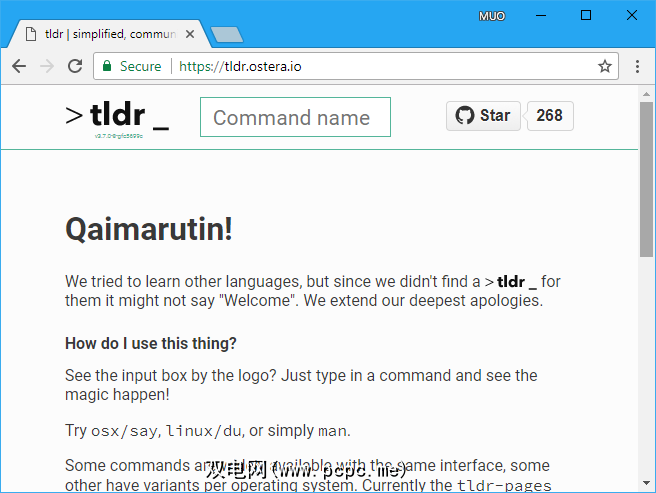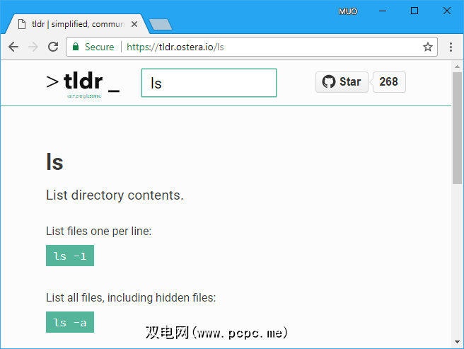 如果您不想安装tldr,或者遇到麻烦时,https://tldr.ostera.io/上有一个很棒的网络版本的 tldr 实用程序。其中包括有关如何使用该网站的简要说明。如果您已经在浏览器中并且想要在不打开终端窗口的情况下快速查找命令,这也很方便。