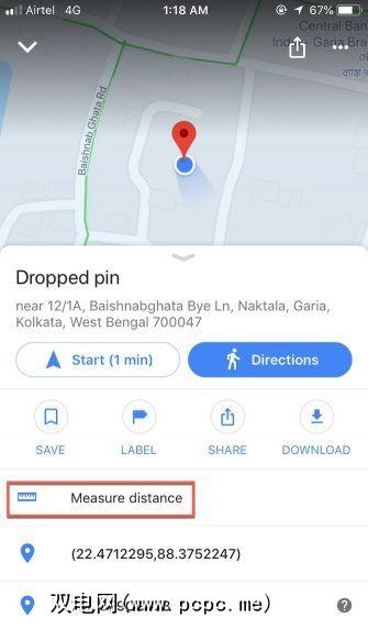 类似地,您也可以在Android和iOS的Google Maps上测量距离。该过程只是略有不同。让我们看看它在 iOS版Google Maps 上如何工作。