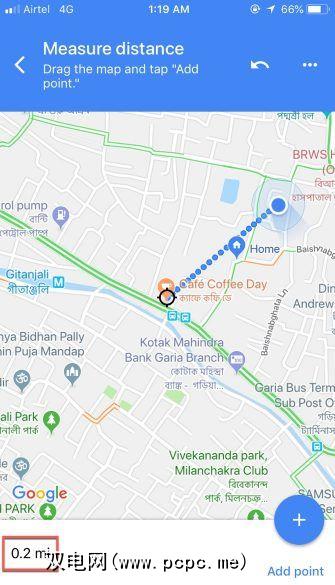 测量最短距离在城市中并不实用除非你想飞。但是,您可以借助多个点来绘制一块土地的总面积。有关更多信息,请参见我们的有关在Google Maps中测量面积和距离的指南。
