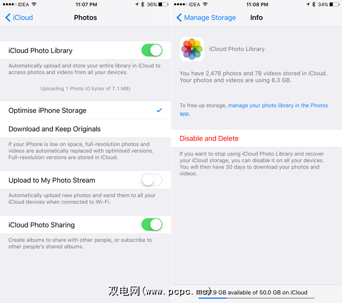 Apple Photos缺乏透明度或控制同步,这意味着您无法手动启动或暂停同步过程。这与iCloud照片库的“优化存储"功能是相同的,它会自动从iPhone删除已上传的旧照片,以便在您用完时腾出空间。