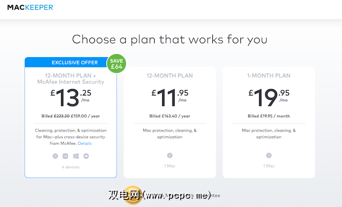 MacKeeper的价格为每月19.95美元,或每年143.40美元。相比之下,反恶意软件服务Malwarebytes和VPN专用Internet的等效订阅在使用12个月后的价格为79.91美元。