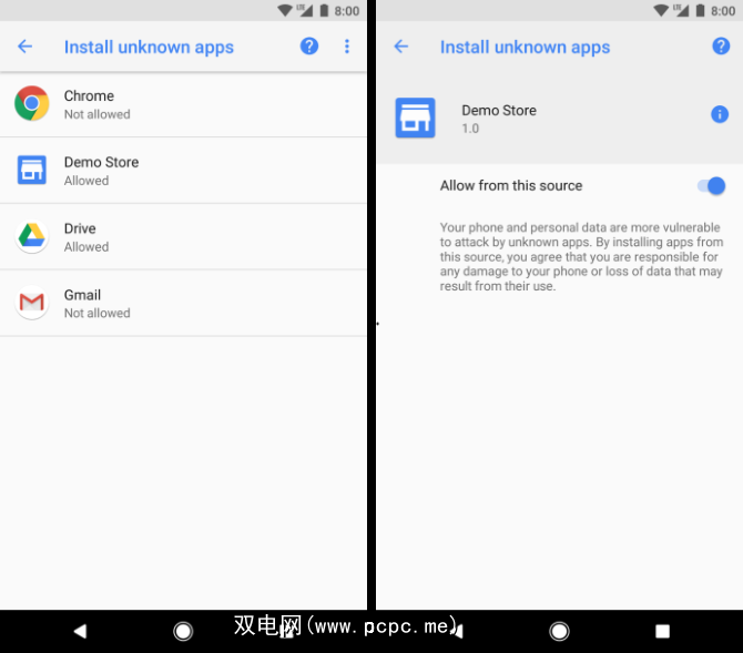 然后,只需启用< strong>允许使用此来源滑块。现在,您可以从受信任的来源安装应用程序,但可以防止它们潜在地损害您的设备。这是一个双赢的解决方案–在用户便利性和安全性上都取得了巨大的胜利。
