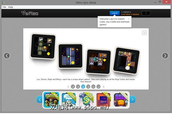 要使用该程序,您需要无需创建Sifteo帐户并登录,所有这些都可以在程序中完成。那么,在Sifteo Sync中Sifteo可以为您提供什么呢?实际上,不多。除了已有的游戏外,还有八种游戏。其中的一个叫做Bliss Bomb,是唯一的免费游戏,它实际上并不是游戏,而是音乐和色彩演示。要获得其余内容,其中包括“忍者神龟"游戏和其他一些独立游戏,您将需要购买积分。