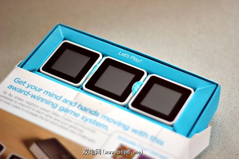 打开盒子时,它的吸引力丝毫不减:滑出三个可爱的Sifteo多维数据集,并以“ Let's Play!"为标题。