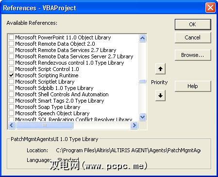 引用是一种“附件",它使您可以在程序中编写其他命令,否则没有参考就无法做到。通常,您可以在工具栏中的“工具"下找到参考列表,然后选择“参考"。对于文件I / O功能,只需向下滚动并选择“ Microsoft Scripting Runtime"。