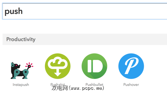 您还可以选择Pushalot,Pushbullet和Instapush,如下图所示。 Instapush主要处理交易和购买,但似乎可以处理其他通知。