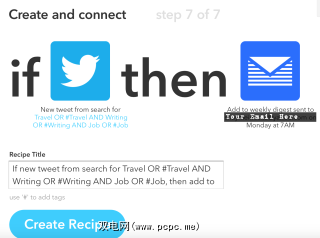 使用IFTTT和Twitter查找工作的关键是准确地缩小要查找的内容,并使用Twitter的先进的搜索方法可缩小搜索范围。一定要避免只搜索#Jobs或#WritingJobs,因为使用IFTTT将会获得大量的点击量,这毫无用处。