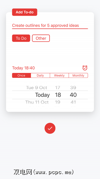 应用程序从固定在屏幕上的示例待办事项列表开始。要将任务添加到此清单,请使用下拉手势。 添加任务框中的底部右上角有一个很小的闹钟。点击它,您可以设置一个提醒以完成任务。