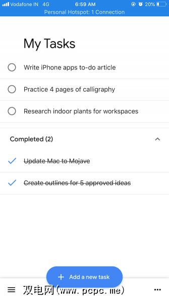 Google Tasks具有易于使用的界面。屏幕底部的蓝色大按钮添加新任务是您需要关注的全部内容。