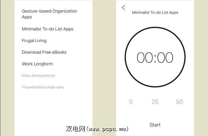 我最喜欢MinimaList的是它集成了Pomodoro计时器,对于那些宣誓使用Pomodoro技术的用户非常满意。计时器设置本身是非侵入式的,这意味着如果您不使用Pomodoro技术来管理时间,它将不会打扰您。