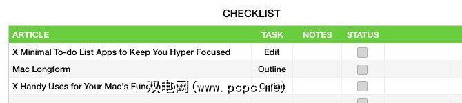 电子表格是一种跟踪任何类型的数据(包括日常任务)的绝对方法。乍一看,它看起来可能很复杂,但它可以像您想要的那样简单。只有两列会做:一个代表任务的名称,另一个代表任务的状态。