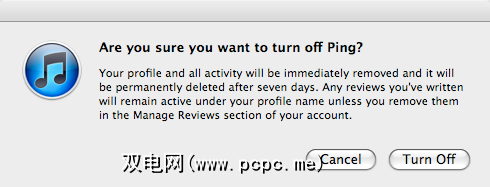 这是禁用Ping的更永久的解决方案。通过选择禁用这种方式,您可以有效地将自己从Ping网络中删除,并删除以前可能进行的所有用户活动。停用Ping 7天后,活动就会永久删除,因此,如果您愿意,可以稍稍改变一下主意。除非您在帐户的管理评论部分中故意将其删除,否则评论将始终与您的名字相关联。不过,不必担心太多。如果您稍后决定启用Ping,iTunes将立即在您的帐户中显示您购买记录的详细信息。