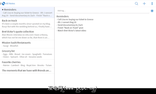 Simplenote是免费的,可在Android 4.0.3及更高版本的智能手机和平板电脑。