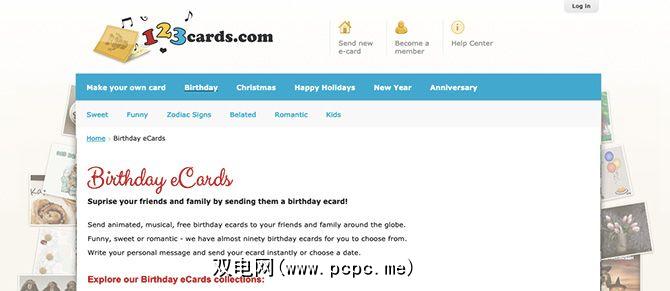 在线发送生日问候的另一个选项是通过123Cards,如果您使用7天免费试用,则可以免费发送生日“克"。