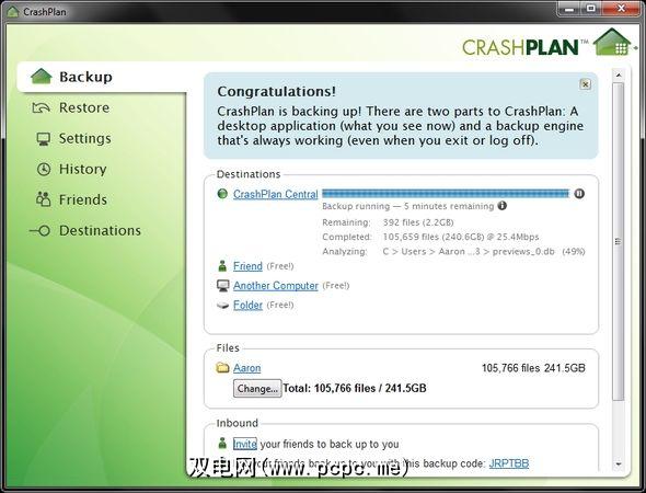 CrashPlan是一个既定的备份提供程序,它提供免费的本地备份和付费的云计划,使您可以将计算机互相备份。