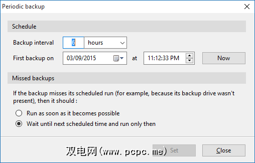 下一步,点击更改在备份时间之外。这将在线打开选项,这是一个非常流畅的用户界面选择。在这里,您可以选择在修改文件时,在特定时间间隔还是手动选择备份时运行备份。对于最新备份,请选择实时选项。如果您不需要备份完全同步,那么每12个小时左右选择一次备份也是合适的。