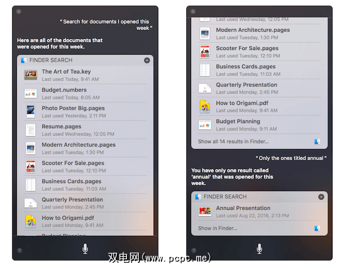 You can narrow down your search by asking Siri to only show files from yesterday, or the presentation you were working on Monday. Play around with it and you’ll be able to figure out what kind of context works best for you.