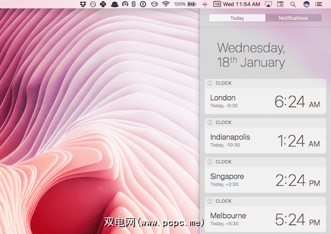 此外,这里有个提示:当显示卡时,单击 + 强>按钮。这样会将时区添加到“今日"屏幕,从而更轻松地在一行中查看多个时区。