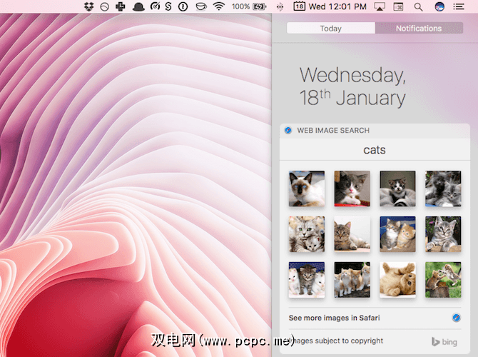 可以将某些卡(例如图像搜索,网络搜索或文件搜索)保存到通知中心,以便以后轻松参考。兼容卡后,您会在角落找到 + 图标。