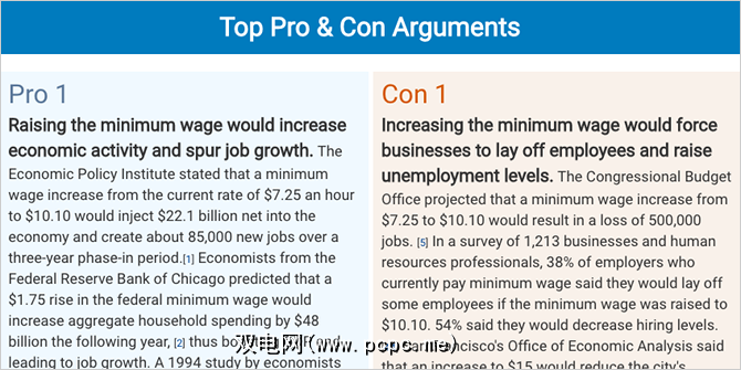 每个主题都包含一个介绍性部分,然后引出一系列并排的内容。方面的正反两方面都经过大量研究。所有的主张和论点都被引用,因此您可以按照自己的意愿进行操作,并做更多的挖掘。