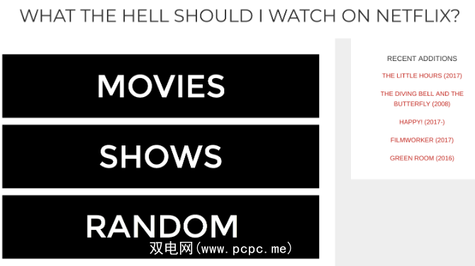 如果您不想花时间调整一堆过滤器来查找自己想要的东西,这就是简单的选择。我应该在Netflix(WTHSIWON)上看到什么地狱,着重于速度和简单性,一次给您一个选择。