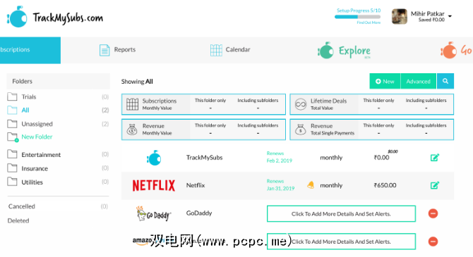 设置完所有订阅后,您可能会惊讶地意识到,您在娱乐等非必要项目上花费了多少。对于订阅量大的用户来说,跟踪我的订阅是一个不错的选择。