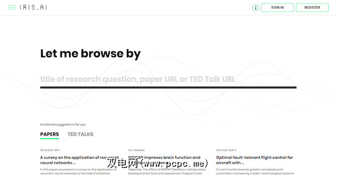 Iris AI是一项免费服务,您可以登录以根据其主题显示相关研究论文。您可以先输入标题,现有链接,甚至输入TED Talk YouTube URL。然后,Iris AI将梳理所有可用资源,并为您提供一个漂亮的界面,您可以快速浏览该界面以找到特定文档。