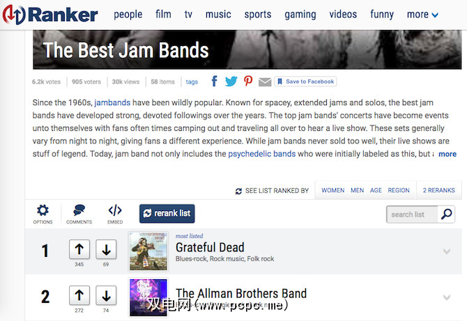 暂时忘掉专家和“正式"名单。让我们谈谈普通人对清单的评价。 Ranker是一个平台,任何人都可以创建列表,然后其他人对其进行投票。随着时间的流逝,它已经建立了一个庞大的人群列表数据库。