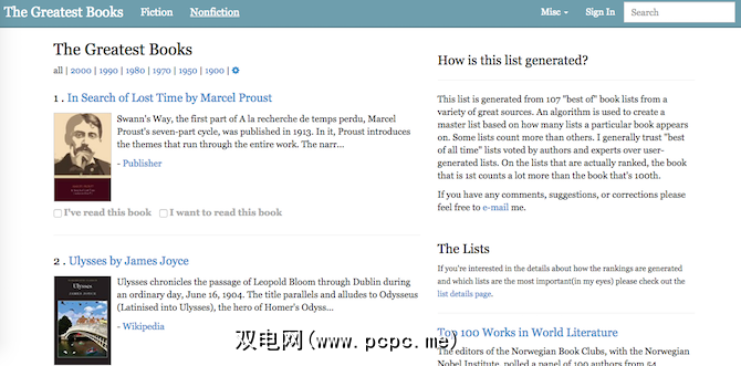 2。 The Greatest Books(Web):您阅读了多少本书?