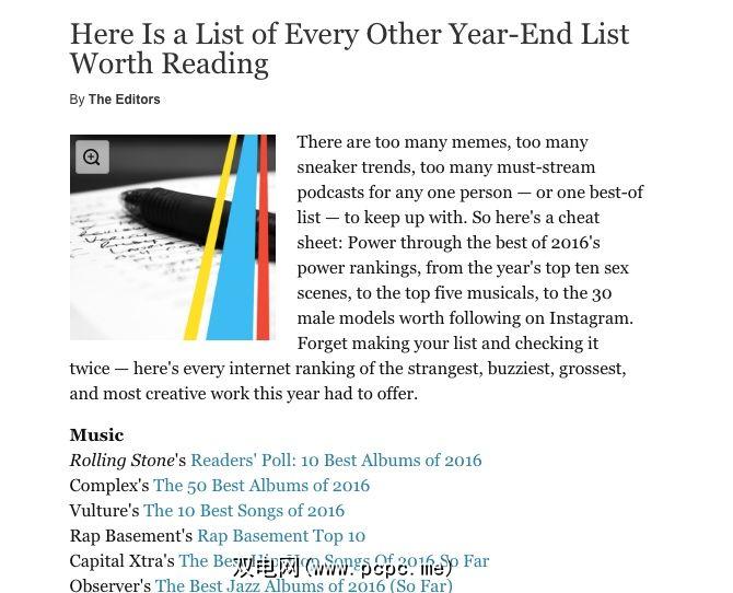 2016年发生了很多事情,有可能您错过了其中的一些。大多数机构和作家都提出了年终名单,回顾了上一年的最佳表现。 Vulture杂志将其中最负盛名的内容汇总起来,以创建年终列表的主列表。