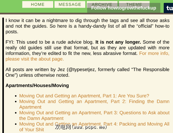 给出了网站名称,不要对网站上的粗话感到惊讶。但是,如果您能超越这一点,那么HTGTFU对于那些想要长大并表现得像社会的机能成员的人来说,是生活中的宝藏。