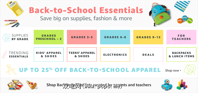 让我们不要忘记Amazon.com上的学校用品。只需单击主页顶部的在学校里节省开支(当前)链接。然后,按等级或趋势必需品检查耗材。或浏览父母和老师创建的列表。