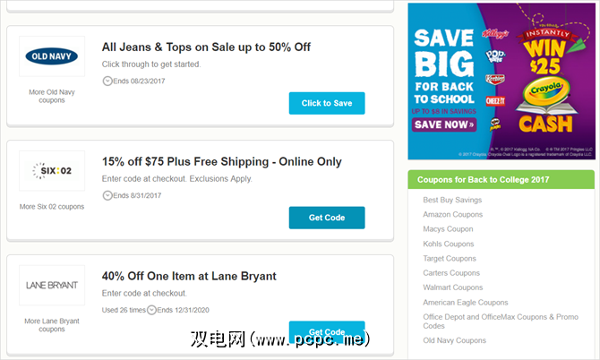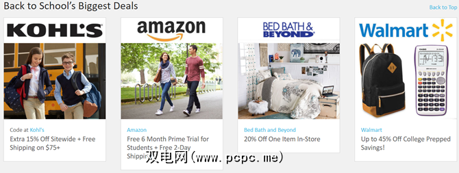 RetailMeNot可为您在几家商店的学校用品提供折扣。当前顶部有一个按钮,可以轻松访问交易。只需单击返回学校并查看所有优惠。