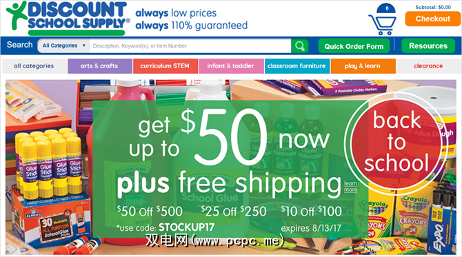 另一个寻找交易的好地方是DollarDays。虽然该网站还出售服装,电子产品和家居用品,但他们有一个不错的学校用品区。他们目前正在其返校商店[关闭链接断开]上出售学校用品40%的折扣。