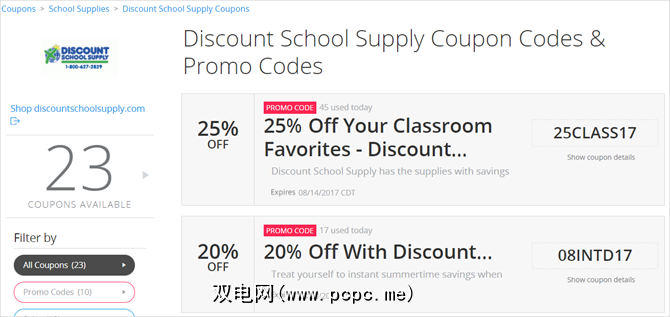 如果您要专门用于Discount School Supply的优惠券,只需在搜索框中弹出商店名称即可。否则,您可以在沃尔玛,塔吉特和亚马逊等在线商店购买优惠券。您还可以为课堂上的宿舍或电子产品选择优惠。