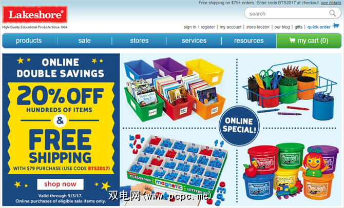 老师和父母都可以在Lakeshore Learning上节省一些用品。而且,如果您碰巧在附近有实体店,返校特卖会为整间商店提供20%的折扣。但是,对于在线购物者而言,您可以获得数百种产品20%的折扣,而且订单满$ 79即可享受免费送货。