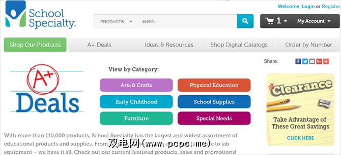 “学校专业"在教室家具和用品,体育器材以及手工艺品方面的销售。家长可以检查各种学习用品,例如活页夹,剪刀,计算器和规划器。但是该站点更适合教师和学校使用。