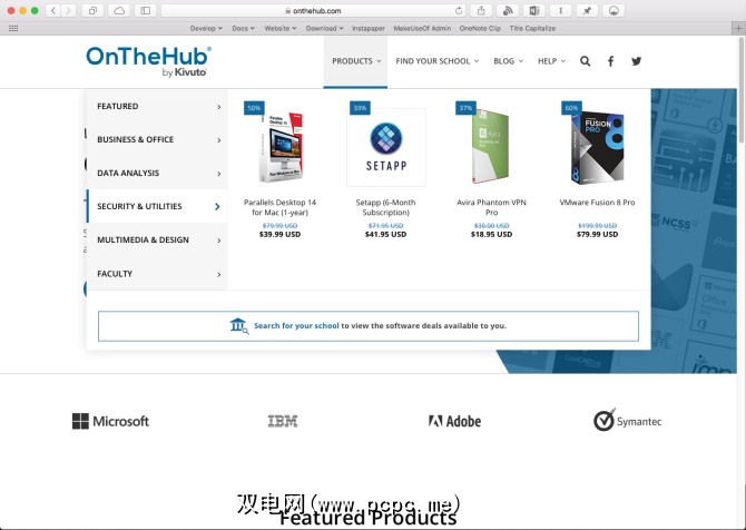 软件标题包括Microsoft Windows 10 for Education(较鲜为人知的Windows 10版本之一),Microsoft Office 2016 Professional Edition,IBM SPSS Statistics,Parallels Desktop for Mac ,VMware Fusion 8,EndNote X9,Adobe Creative Cloud Suite,Setapp等。使用OnTheHub学校搜索来查找您的学校或学院是否符合条件。