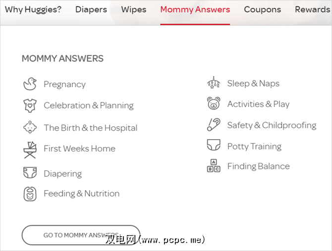 您不必为您的小孩子购买Huggies产品,就可以在其网站上的“ Mommy Answers"部分中找到它们。该网站涵盖了从婴儿出生后的头几周到便盆训练的各个类别,是一个有用的网站。但这还不是全部,因为您可以享受有关睡眠和午睡,活动和娱乐以及饮食和营养的文章。